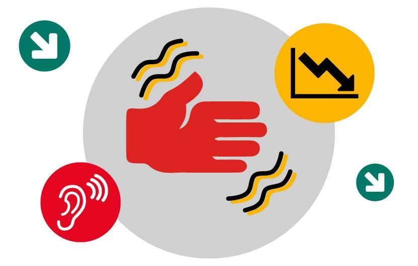 The tool’s vibration level and the length of exposure time are the two key factors that indicate whether an operator will be at risk from HAVS. Vibration and noise can both be minimized by choosing tools with low levels, evaluating the work pattern and wearing appropriate PPE, such as ear protectors.